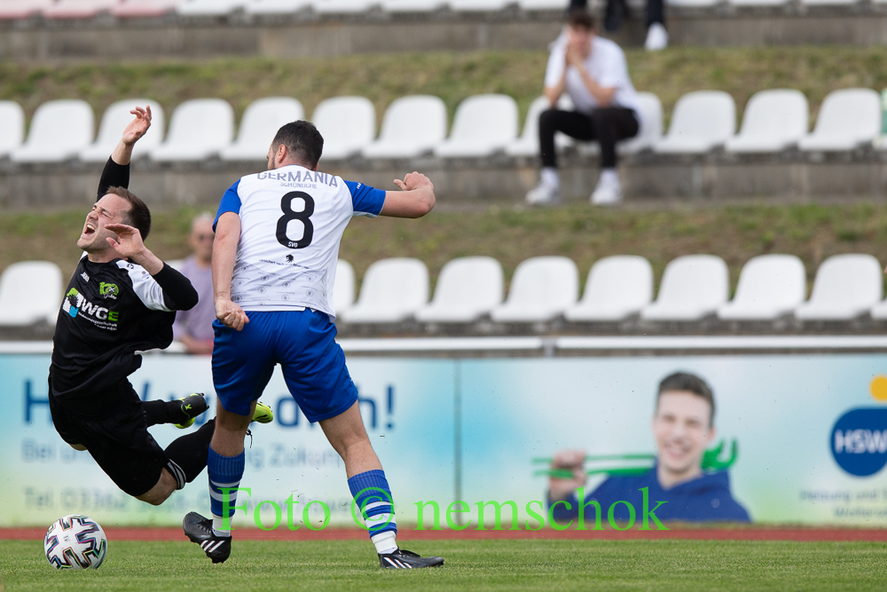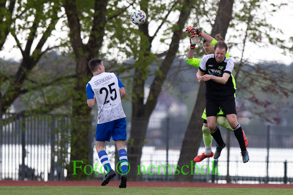 Der Germania-Jubel war aus zwei Gründen noch intensiver als sonst. Zum einen hatte Germania das Derby der Liga gewonnen und zum anderen konnte die Mannschaft von Trainer Oliver Richter den Abstand auf den Tabellenzweiten FC Concordia Buckow/Waldsieversdorf gleich halten. Es geht für beide Vereine in der Endphase der Saison immerhin um den Aufstieg in die Brandenburgliga. Ganz nebenbei war es das Spitzenspiel der Liga, denn der FV Erkner war vor dem Spieltag noch Tabellendritter.