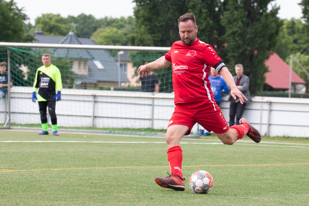 Und während der ehemalige Vorsitzende des Fußballkreises Ostbrandenburg, Thomas Driebusch, den Pokal bei den Ü 50 übergab, wurde auf dem Kunstrasenplatz des Schöneicher Sportgeländes das Spiel der Ü 40-Senioren von Schiedsrichter Horst Panwitz angepfiffen. Der SV Woltersdorf traf auf die TSG Rot-Weiß Fredersdorf-Vogelsdorf, dem damit einzigen Vertreter aus Märkisch-Oderland. Diese Partie verlief deutlich spannender. Auch hier fiel das erste Tor bereits nach drei Spielminuten. Woltersdorf ging durch Enrico Braatz in Führung. Bei Halbzeit stand es allerdings 2:1 für die TSG, die durch Christian Röhr und Markus Arndt erfolgreich war. Die Rot-Weißen hatten noch einen Neunmeter vergeben und sowohl den Pfosten als auch die Querlatte getroffen. Woltersdorf konnte noch einmal zum 2:2 ausgleichen, doch Röhr und Kapitän Maurice Verbrüggen machten im zweiten Durchgang dann alles klar. Vom Papier her gilt der 5:2-Sieg der Rot-Weißen sicherlich als Überraschung. In der laufenden Kreisliga-Meisterschaftsrunde ist nämlich Woltersdorf Tabellenzweiter und die TSG nur Sechster. Aber die Mannschaft um ihren Kapitän Maurice Verbrüggen hatte sich für dieses Finale mit Männern aus der eigenen Ü-35-Truppe verstärkt. „Das ist völlig in Ordnung“, erkannte Woltersdorfs Kapitän Matthias Lau die Leistung des Gegners an. „Wir hatten auch unseren Spaß und werden trotzdem feiern.“