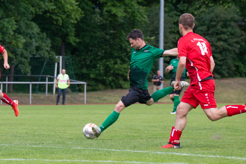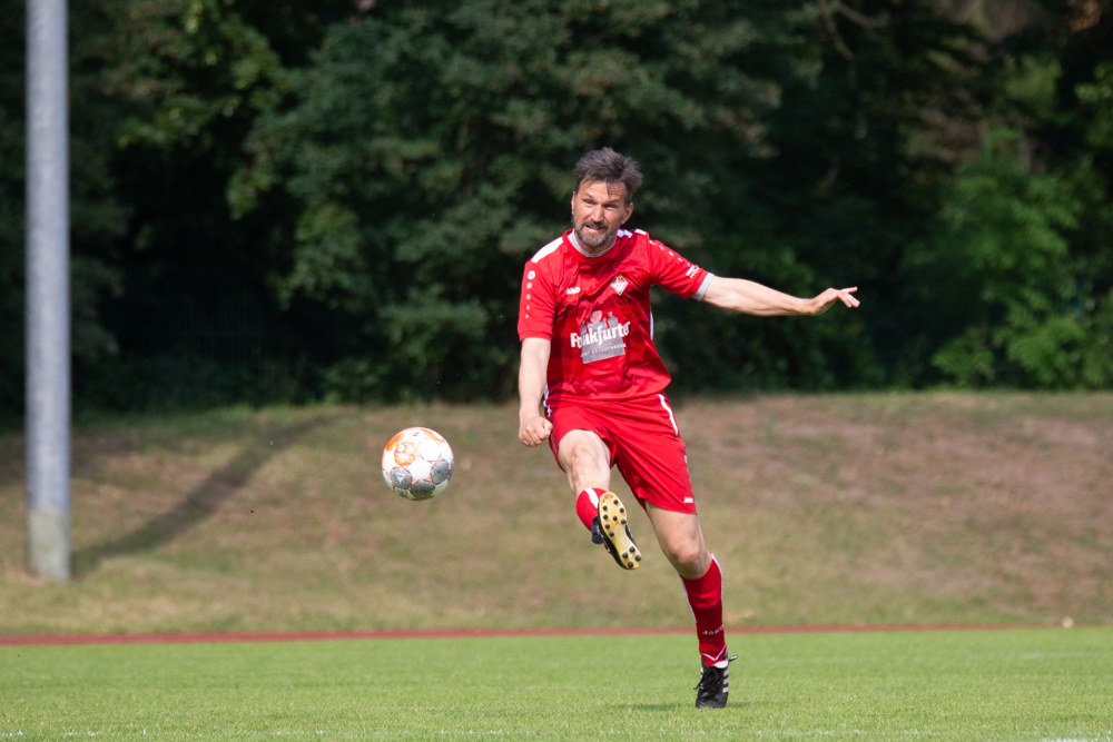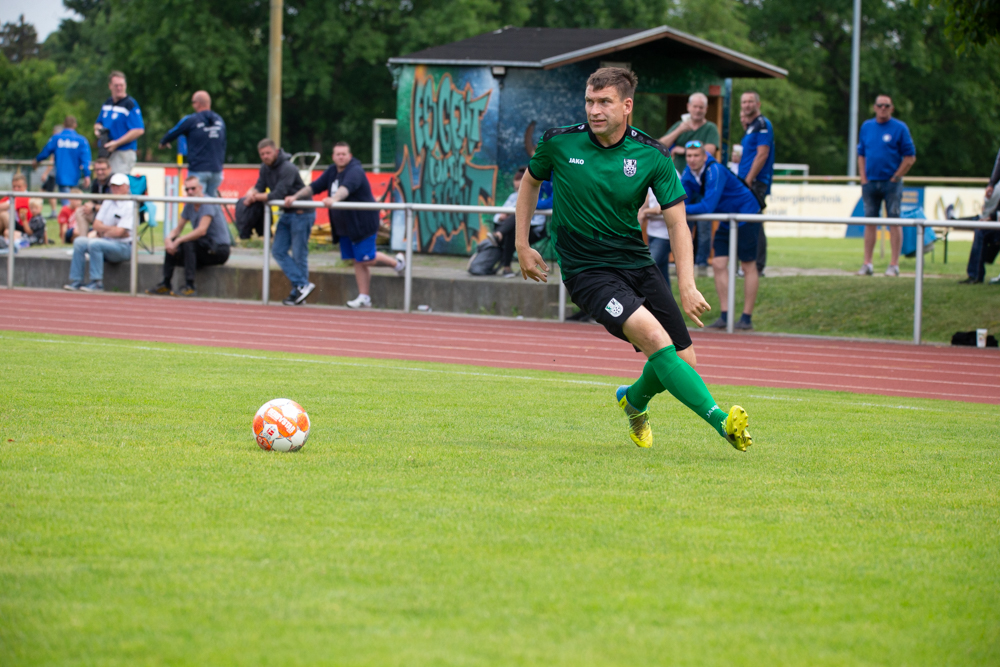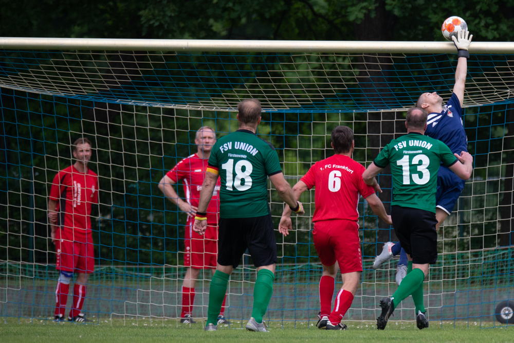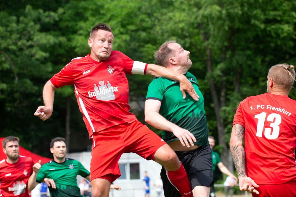 Ein echter Höhepunkt, wenn nicht sogar der Höhepunkt, war das Pokalfinale der Altherren (Ü 35) zwischen den Männern des FSV Union Fürstenwalde und 1. FC Frankfurt. Ein tolles Spiel, vor allem für die Fußballfreunde, die den gepflegten Umgang mit dem Ball und Gegner lieben. Die Partie begann mit einem irren Tempo und bei steigenden Temperaturen, musste man sich als Beobachter schon fragen: „Wie lange wollen die das durchhalten?“. Dabei spielte Union mit schnellen und langen Pässen in die Spitze, vor allem auf Christian Mlynarczyk und Martin Anders. Die Frankfurter kombinierten mehr und hatten insbesondere mit Artur Aniol ihren Aktivposten im Angriffsspiel. „Ich bin fix und fertig“, sagte der Frankfurter nach dem Spiel und einem immensem Laufpensum.