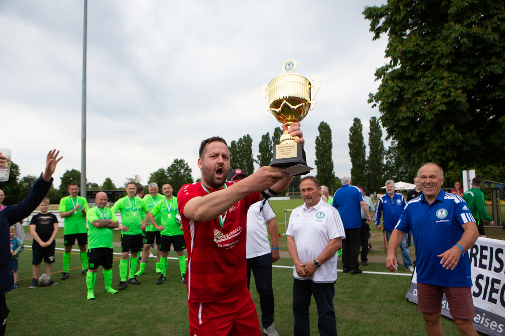 Der Sieg war alles in allem verdient, schon allein wenn man mit ansah, wie die TSG-Männer ihre Treffer herausspielten. Das 3:2 von Christian Röhr zum Beispiel war ein echter Höhepunkt. Thomas Lindner spielte im Alleingang die gesamte Woltersdorfer Hintermannschaft aus, um dann für seinen Kollegen aufzulegen. Mit Goldlametta und viel Sekt wurde dann gejubelt und noch lange hallten die Gesänge: „Egal, egal, nur einmal im Jahr gibt es den Pokal“, über den Schöneicher Sportplatz. Es ist der erste Pokal für unsere neuformierte Altherren-Fußball-Abteilung“, freute sich TSG-Präsident Rüdiger Klaus.
