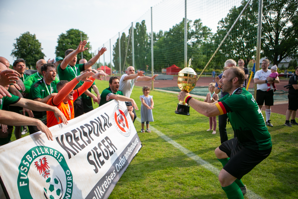 Glückliche Sieger, aber auch faire Verlierer bei den Kreispokalendspielen des Fußballkreises Ostbrandenburg am 4. Juli in Schöneiche