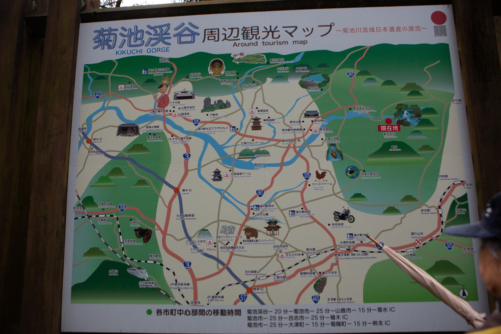 Wer die Insel besucht, der sollte einen Besuch der Kikuchi-Schlucht mit einplanen. Das Naturschutzgebiet (Aso Kuju-Nationalpark) liegt unweit der Stadt Kikuchi in der Präfektur Kumamoto. Genauer befindet sich der Kikuchi Keikoku (die Schlucht) zwischen den Kleinstädten Aso und Kikuchi. Einplanen sollte man hier auch einen langen Spaziergang, denn entlang der Kikuchi-Schlucht gibt es zahlreiche Aussichtspunkte, die atemberaubende Blicke auf stürzendes Wasser und Fotografen einzigartige Motive bieten. Es ist eine herrliche Atmosphäre, wenn man nur dem rauschenden Wasser zuhören und dann gelegentlich verschiedene Wildvögel beobachten kann.