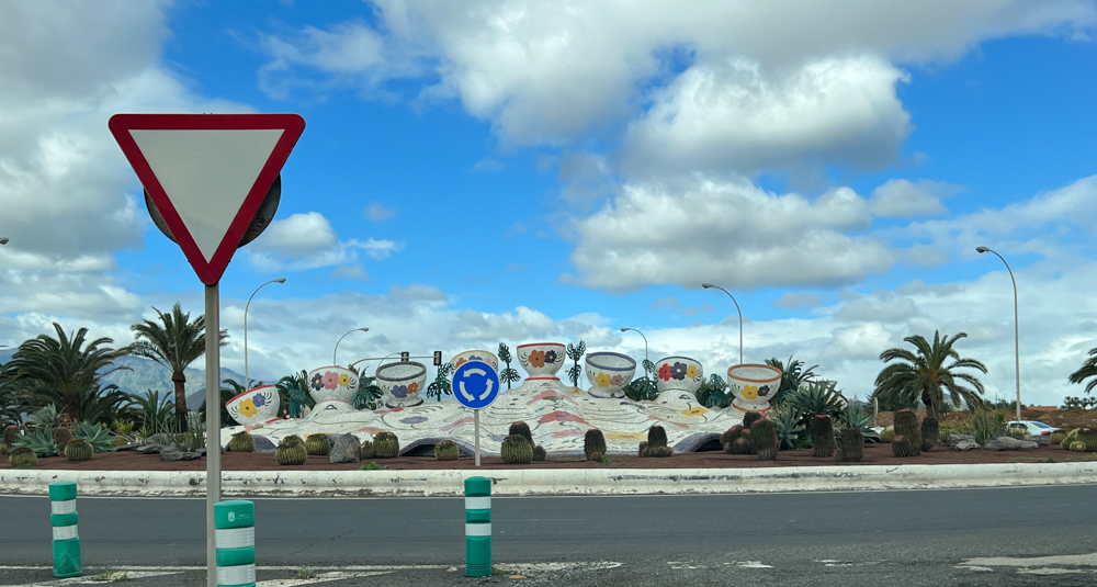 Zu erreichen ist die Anlage über die Autobahn GC1, Abfahrt La Garita. Auf dem Weg zum Ziel geht die Fahrt an zwei sehr attraktiv gestalteten Kreisverkehren vorbei. Auf der ersten Verkehrsinsel fallen riesige Kaffeetassen auf und danach ist schon von Weitem ein großer Pilz zu sehen.