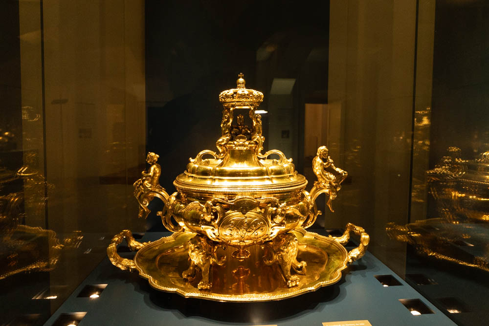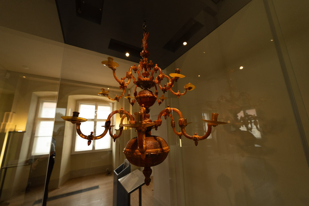 Im Schlossmuseum ist nun auch wieder der einzigartige Bernsteinkronleuchter zu sehen. 20 Jahre war er versteckt im Depot, nun nach einer umfangreichen Sanierung leuchtet er, auch wenn gar keine Kerze entzündet wurde, wieder in den warmen Tönen des Bernsteins. Dieses einzigartige Stück aus dem Jahr 1650 stammt Überlieferungen zufolge aus der Sammlung von Baron Mayer-Amschel de Rothschild (1818-1874) und wurde 1977 von der Westberliner Schlösserverwaltung bei Sotheby’s ersteigert. Der Kronleuchter repräsentiert beispielhaft die große Bernsteintradition des Hauses Brandenburg-Preußen, heißt es dazu.
