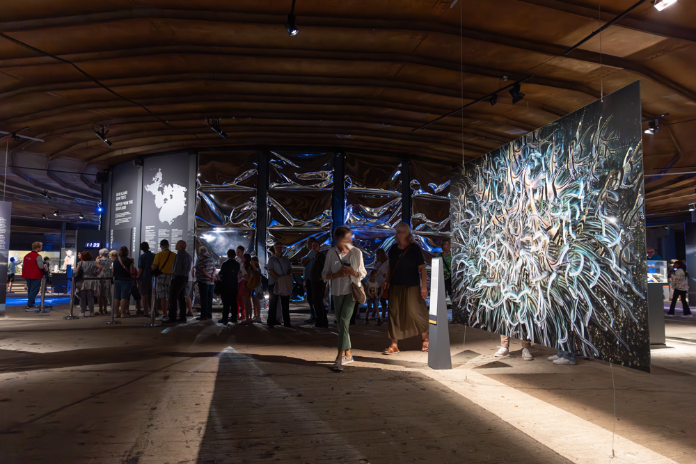 Das gab es noch nie im Gasometer Oberhausen: Die Ausstellung „Planet Ozean“ lockte 670 000 Gäste in nur 6,5 Monaten in die Ausstellungshalle. Mit Originalexponaten, Fotografien, Filmen, Hörerlebnissen und der Animation „Die Welle“ widmet sich die Präsentation der faszinierenden und zugleich fragilen Schönheit der Weltmeere. Zahlreiche Sammlungsobjekte des Deutschen Meeresmuseums sind ebenfalls vor Ort zu sehen. Die Ausstellung im Gasometer wird nun für ein Jahr verlängert und kann bis 30. November 2025 besucht werden.