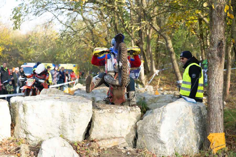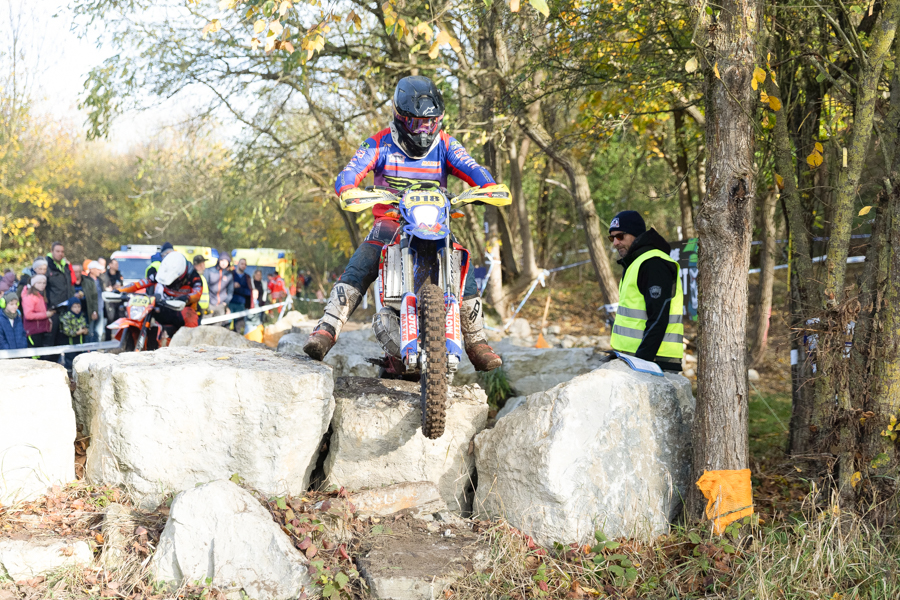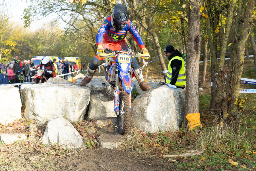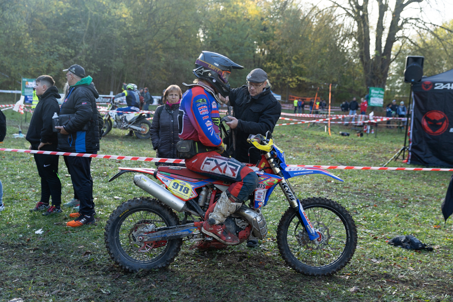 Viele Fans, die beim Novemberpokal 2024 in und um Rüdersdorf hinter den Absperrungen standen, drückten natürlich den lokalen Teilnehmern die Daumen und feuerten sie auch lautstark an. Einer der Piloten ist Artur Krienke, der für den MC Woltersdorf an den Start ging. Er trug die Startnummer 918 und war mit seiner Beta in der Klasse National E3 unterwegs.