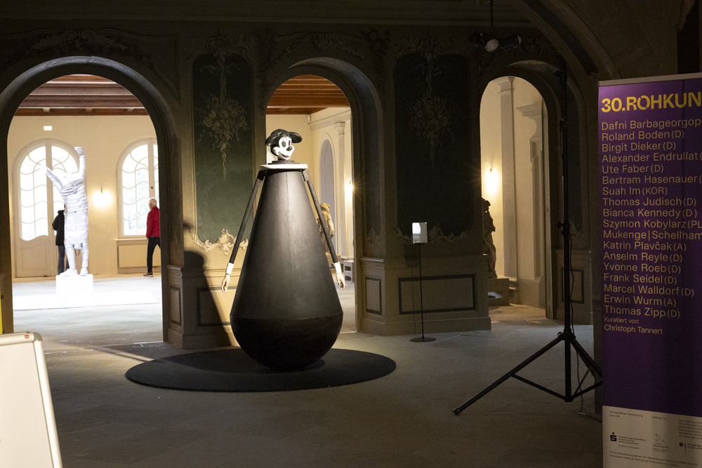 Aber wenn man selbst in einer etwas ungewöhnlichen Ausstellung wandelt, in der zumeist jüngere Künstler ihre Werke präsentieren, dann reichen solche Worte nicht aus, um wiederzugeben, was man gerade sieht. So bei der inzwischen 30. Rohkunstbau im Schloss Altdöbern, die dieses Jahr unter dem Titel „Ästhetische Wiederbewaffnung“ stand und am 2. November ihre Tore schloss. Der Name „Rohkunstbau“ steht seit drei Jahrzehnten für internationale Ausstellungen zeitgenössischer Kunst in Brandenburg.