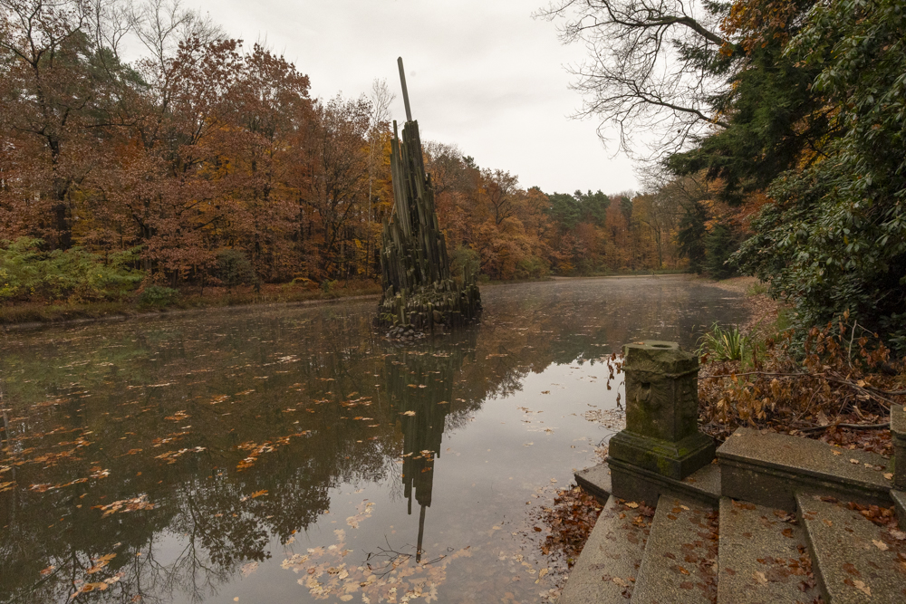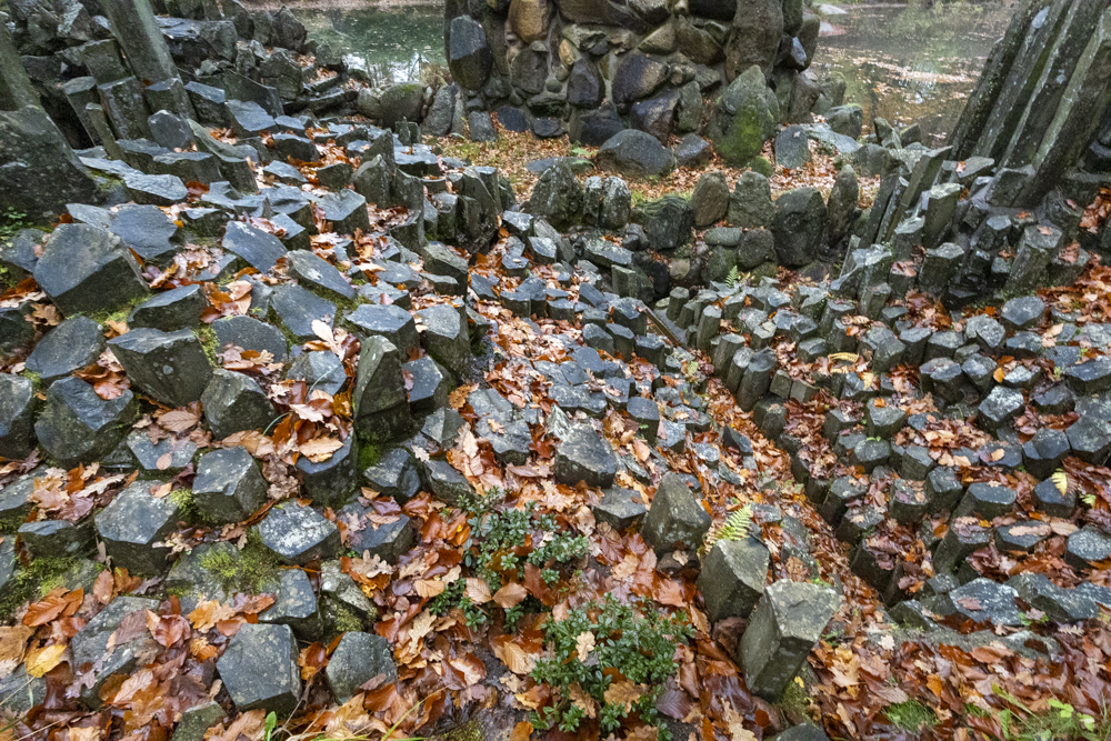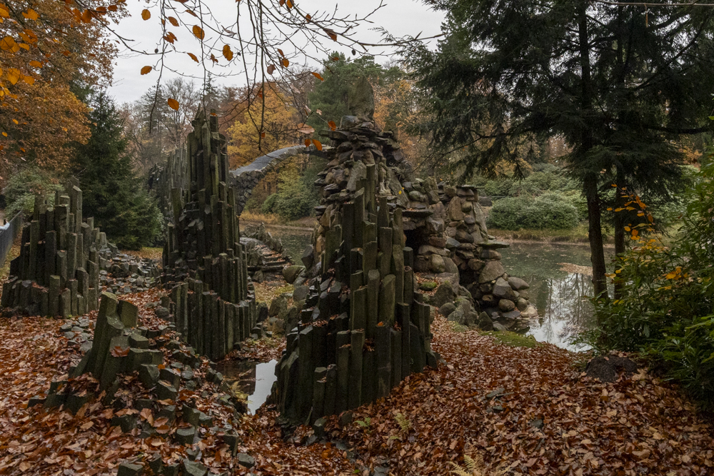 rbaut wurde die 19,80 m freispannende Bogenbrücke zwischen 1866 und 1875[1] vom Rittergutsbesitzer Herrmann Friedrich Roetschke. Ihr Halbkreis spiegelt sich im See und bildet so optisch einen vollständigen Kreis. Die im See angeordneten Basaltsäulen werden Orgel genannt.