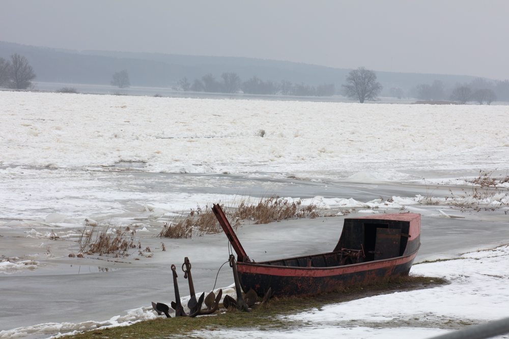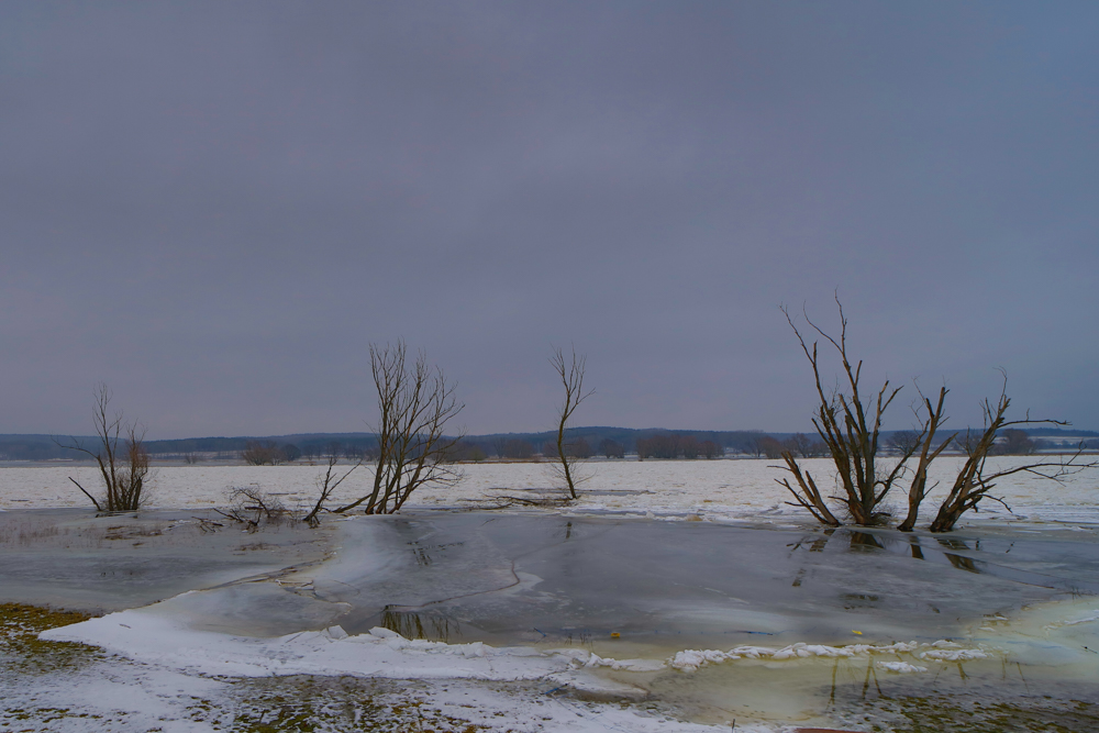 Winterspaziergang auf dem Deich der Oder zwischen Zollbrücke und Bienwerder