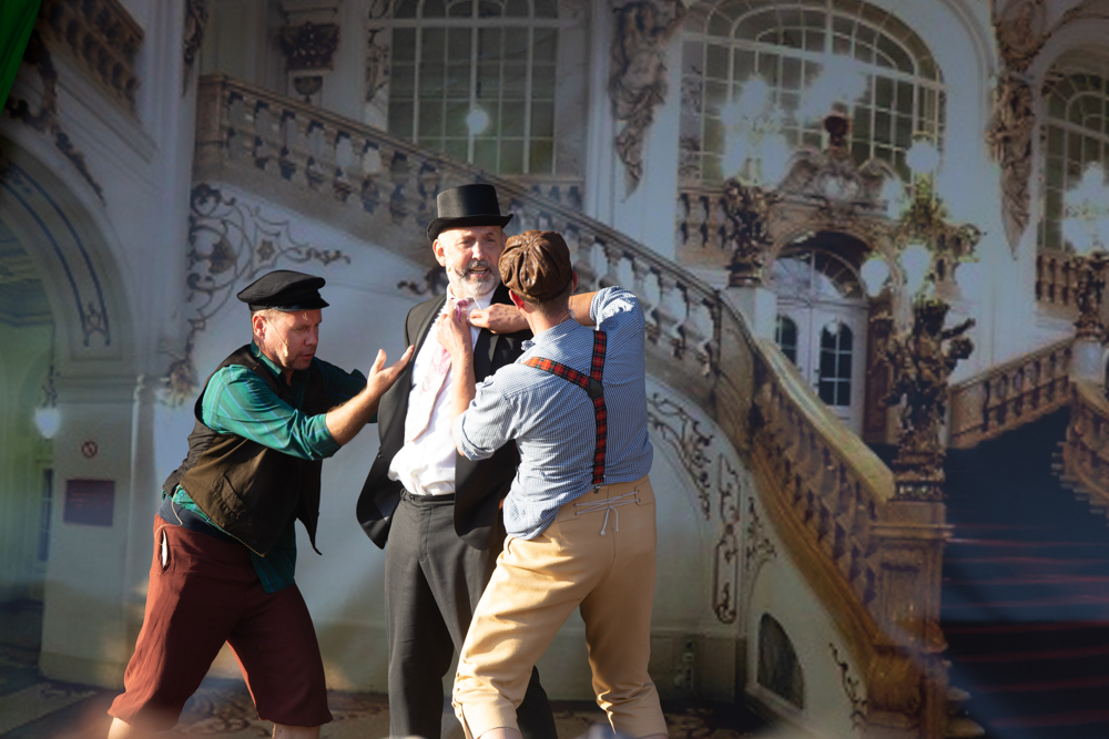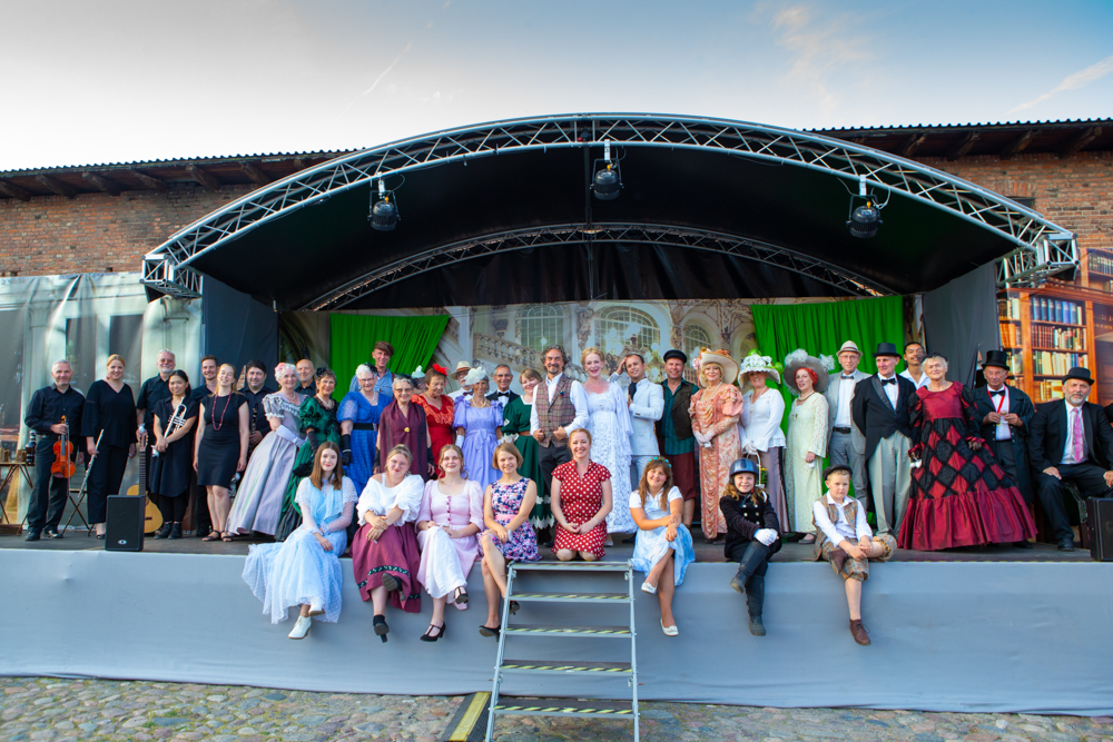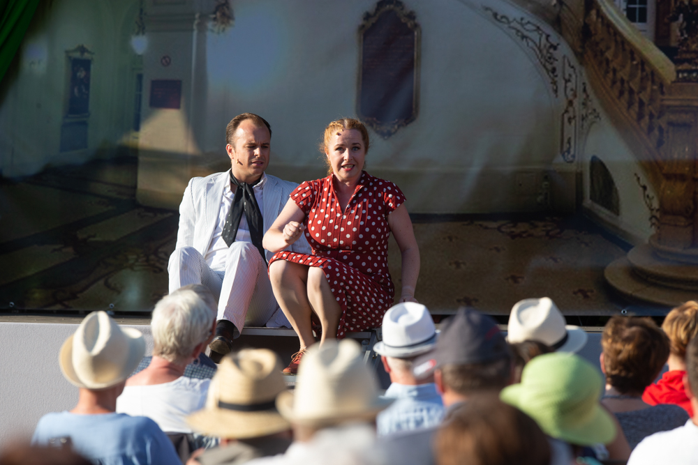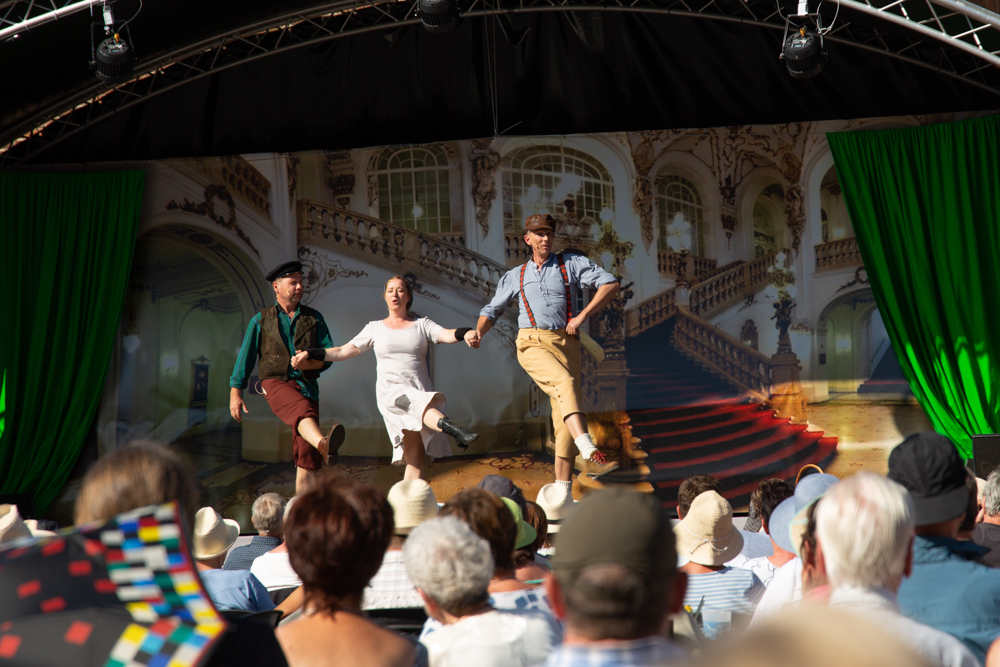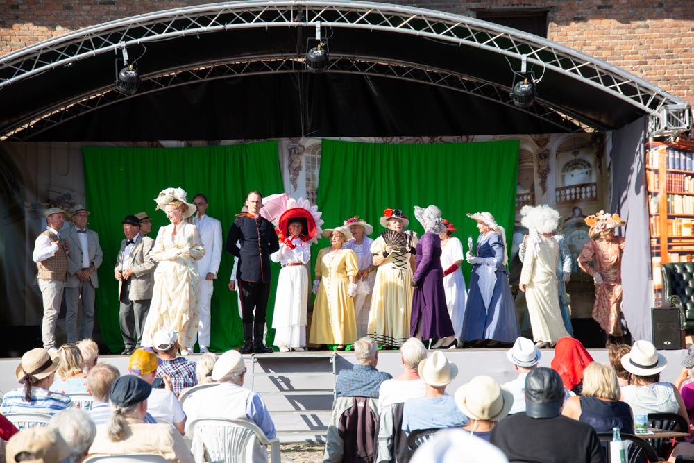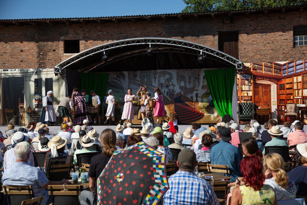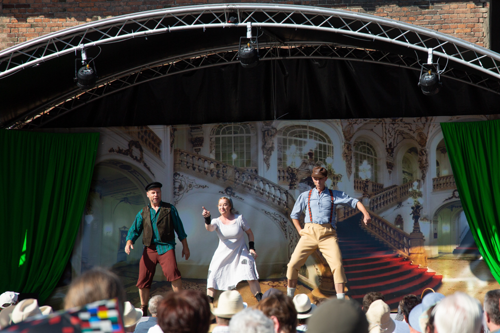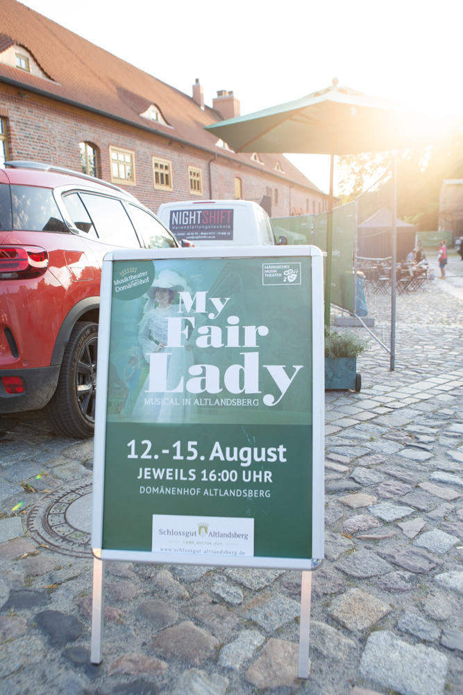 Eliza Doolittles Premiere auf dem Opernball: Nachdem Anfang des Sommers ein Barockstück auf dem Altlandsberger Domänenhof große Begeisterung beim Publikum auslöste, wurde es nun mit dem Musical My Fair Lady an vier aufeinanderfolgenden Nachmittagen erfreut. Der Vorsatz des Schlossgut-Chefs Stephen Rübsam "wir wollen die Kultur draußen etablieren", scheint aufgegangen zu sein. Von Stephan Wapenhans (Prof. Higgins) in Szene gesetzt, agierten professionelle Künstler wie Sopranistin Cornelia Marschall (Eliza Doolittle), Thomas Hartkopf (Oberst Pickering) oder James Michael Atkins (Freddy Ensford-Hill) Seite an Seite mit Neuenhagenern aus der Seniorentanzgruppe, Rüdersdorfern aus dem Pelle Camp oder Schöneicher Musikern. Das Publikum freute sich auch über die lokale Anbindung des Strückes an die Region wie der Rennbahn Hoppegarten und anderen Lokalitäten.