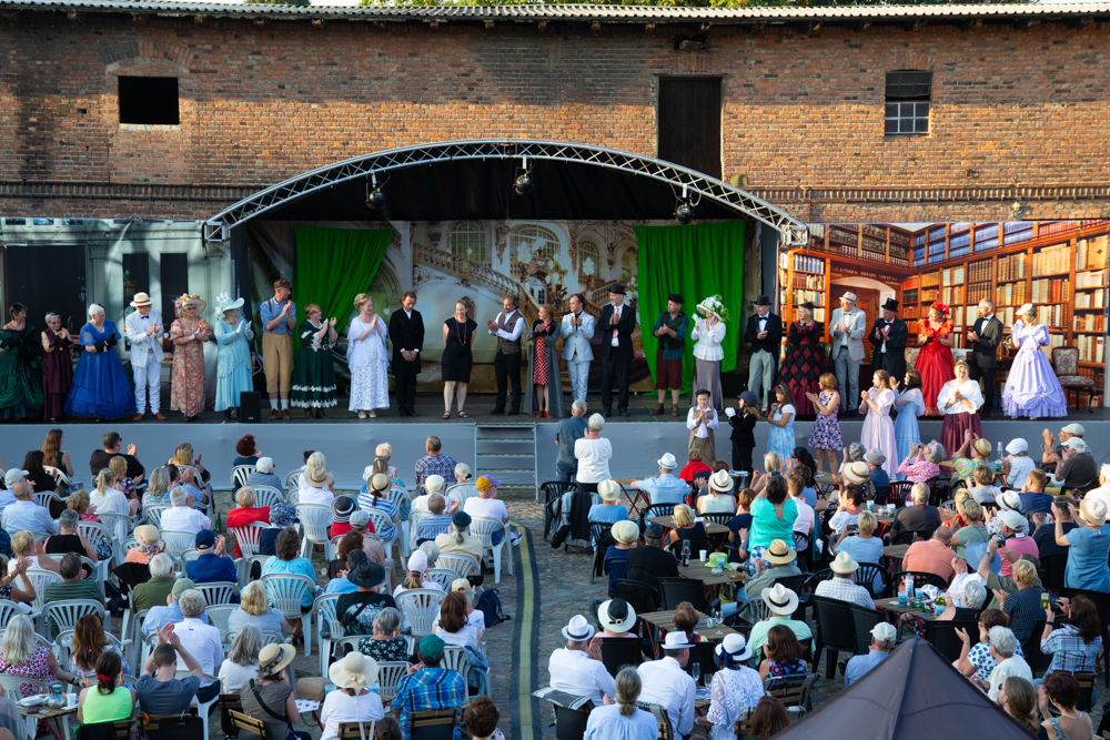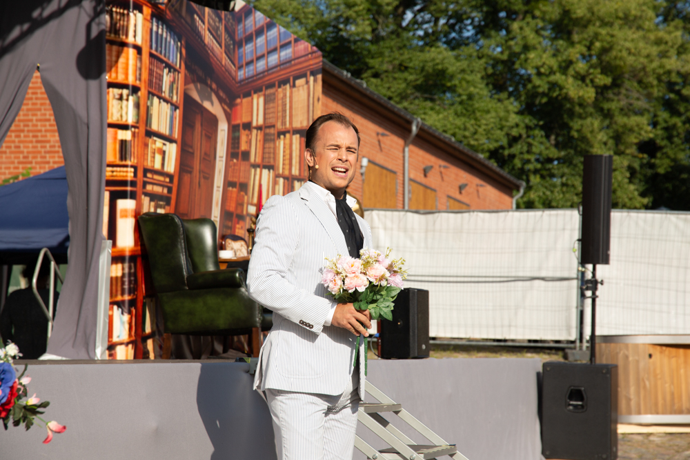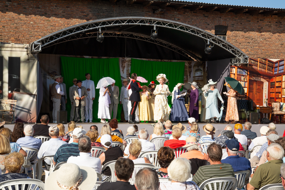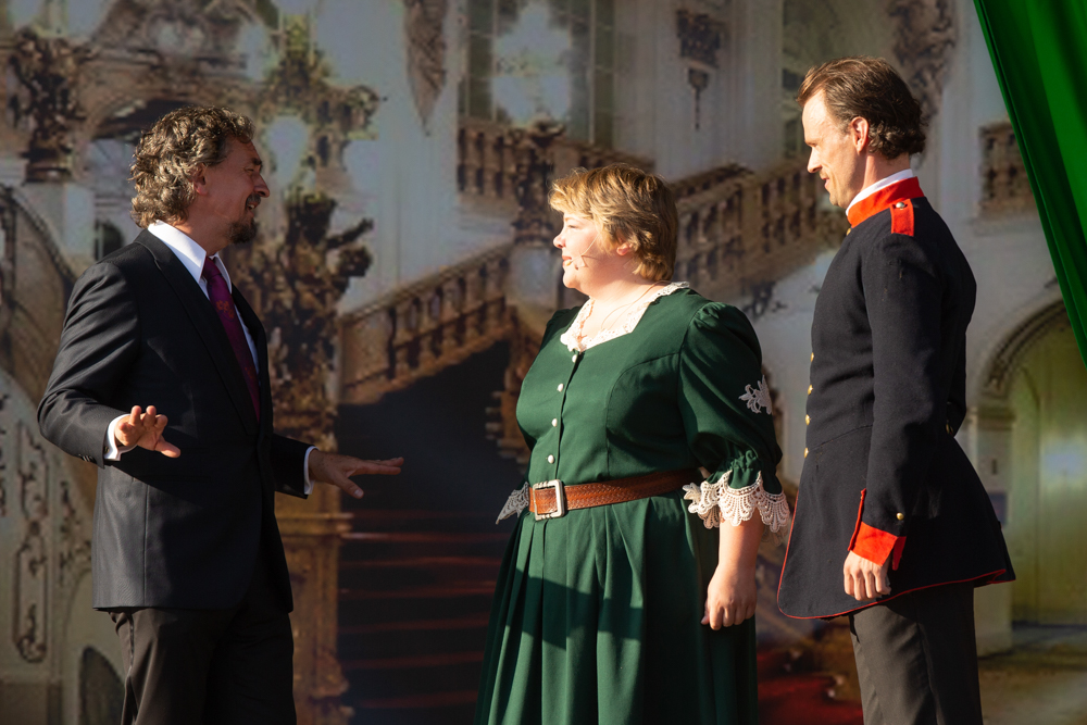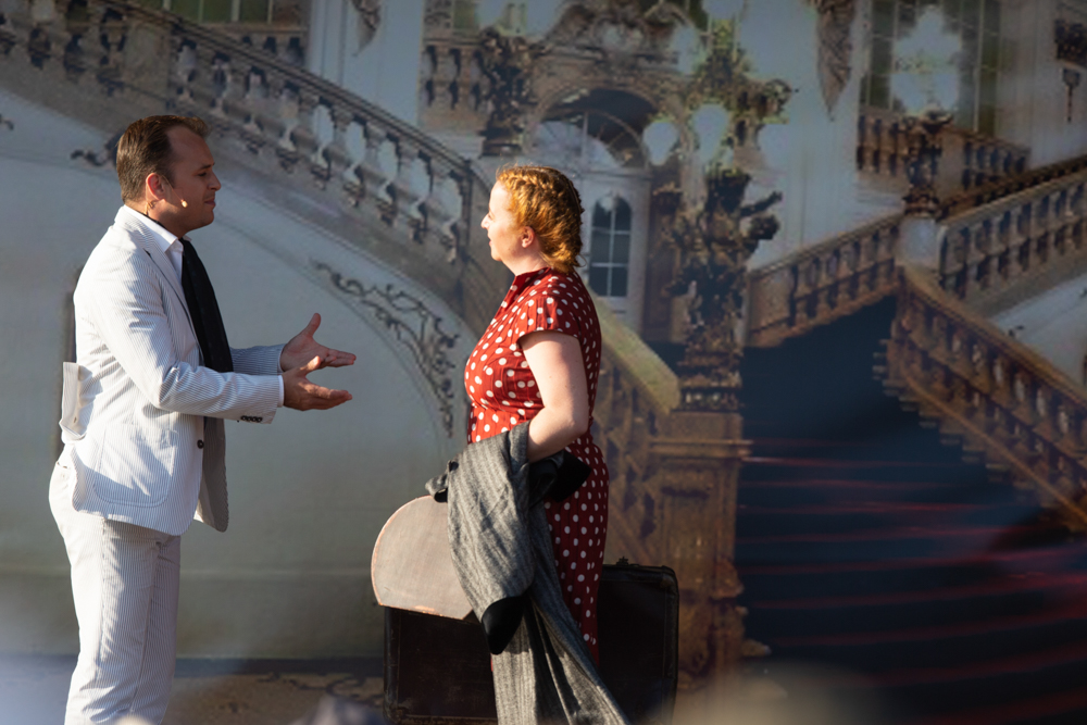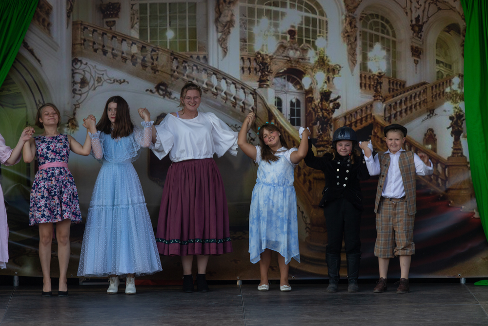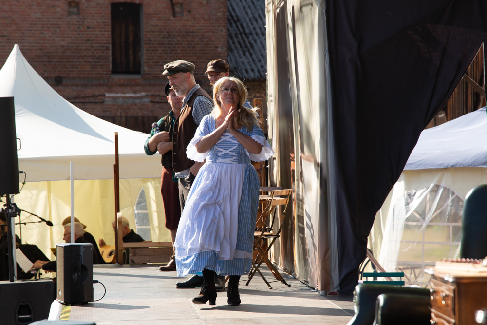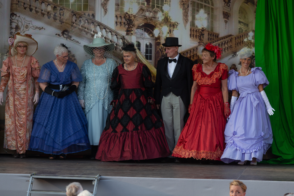Eliza Doolittles Premiere auf dem Opernball: Nachdem Anfang des Sommers ein Barockstück auf dem Altlandsberger Domänenhof große Begeisterung beim Publikum auslöste, wurde es nun mit dem Musical My Fair Lady an vier aufeinanderfolgenden Nachmittagen erfreut. Der Vorsatz des Schlossgut-Chefs Stephen Rübsam "wir wollen die Kultur draußen etablieren", scheint aufgegangen zu sein. Von Stephan Wapenhans (Prof. Higgins) in Szene gesetzt, agierten professionelle Künstler wie Sopranistin Cornelia Marschall (Eliza Doolittle), Thomas Hartkopf (Oberst Pickering) oder James Michael Atkins (Freddy Ensford-Hill) Seite an Seite mit Neuenhagenern aus der Seniorentanzgruppe, Rüdersdorfern aus dem Pelle Camp oder Schöneicher Musikern. Das Publikum freute sich auch über die lokale Anbindung des Strückes an die Region wie der Rennbahn Hoppegarten und anderen Lokalitäten.