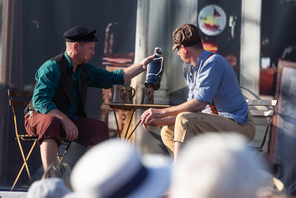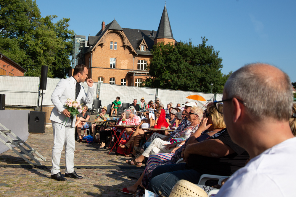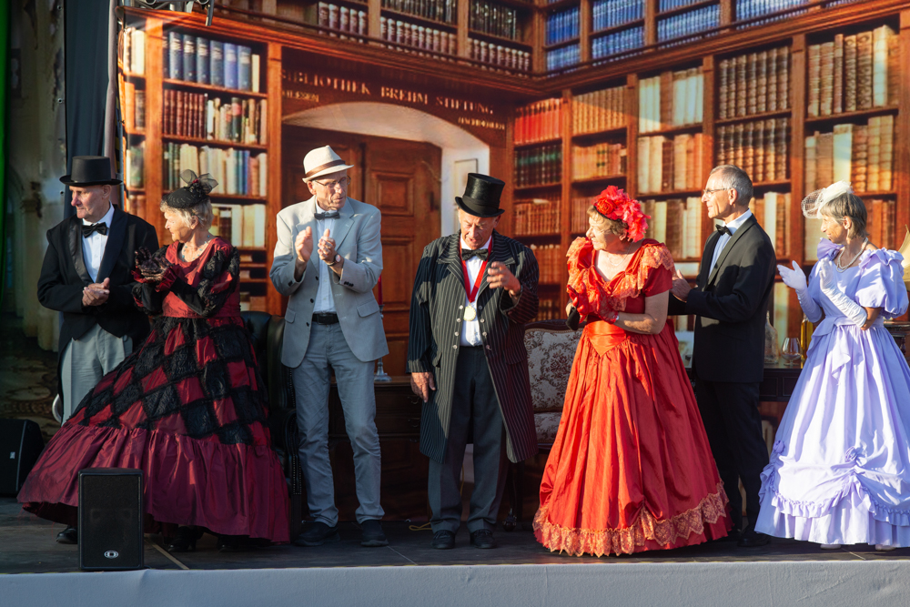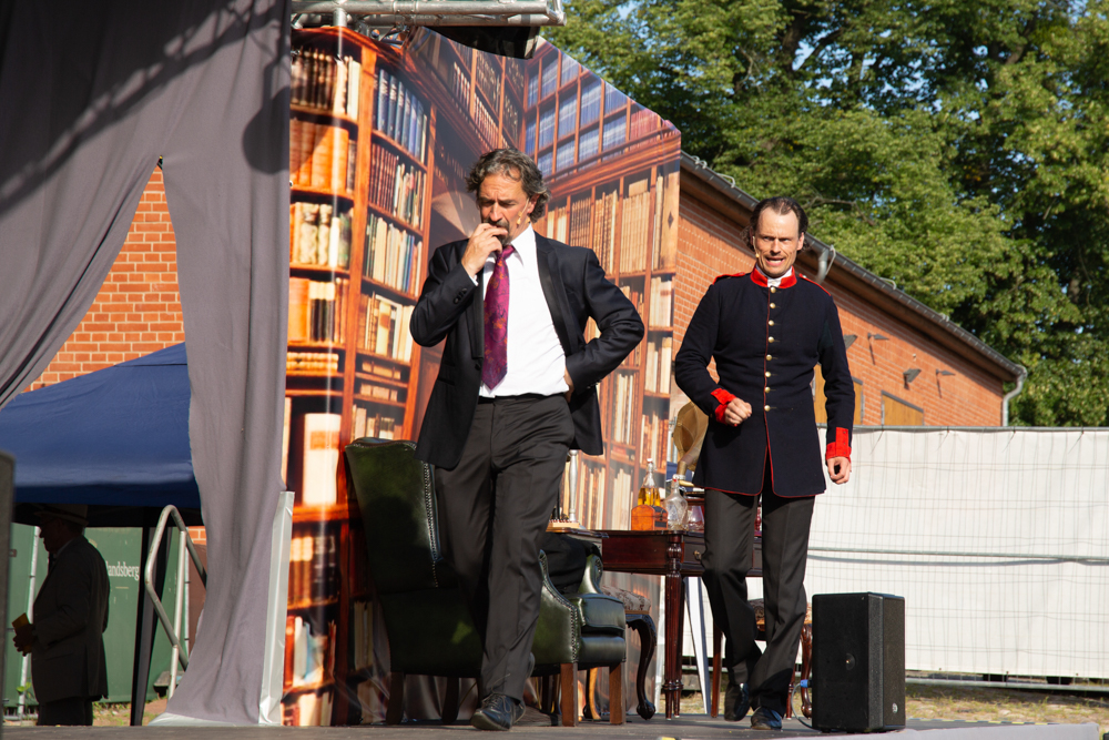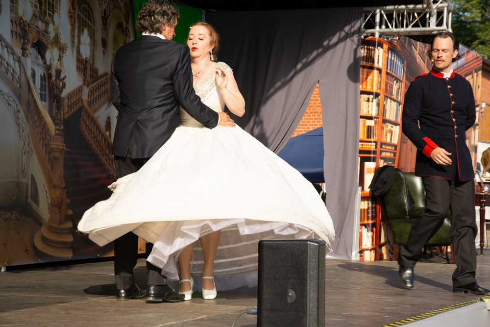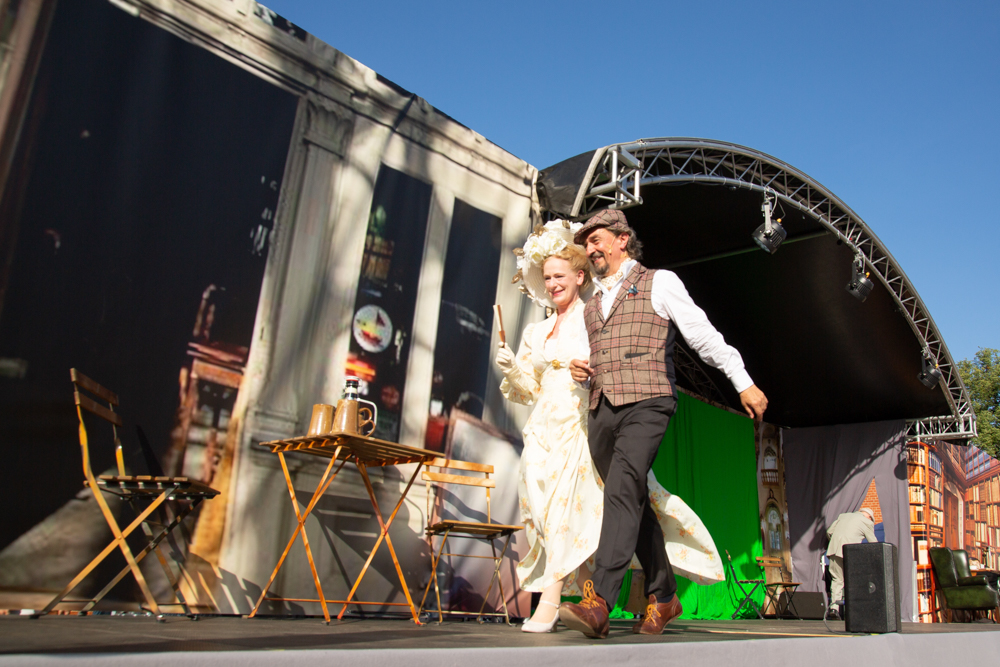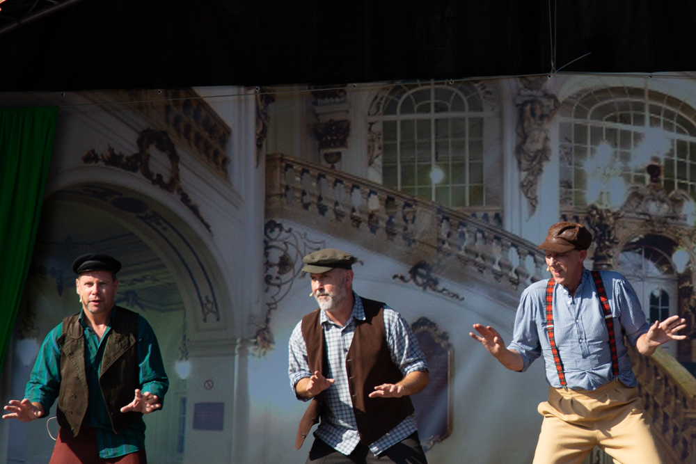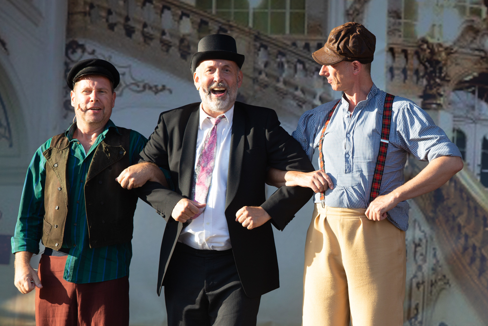 Eliza Doolittles Premiere auf dem Opernball: Nachdem Anfang des Sommers ein Barockstück auf dem Altlandsberger Domänenhof große Begeisterung beim Publikum auslöste, wurde es nun mit dem Musical My Fair Lady an vier aufeinanderfolgenden Nachmittagen erfreut. Der Vorsatz des Schlossgut-Chefs Stephen Rübsam "wir wollen die Kultur draußen etablieren", scheint aufgegangen zu sein. Von Stephan Wapenhans (Prof. Higgins) in Szene gesetzt, agierten professionelle Künstler wie Sopranistin Cornelia Marschall (Eliza Doolittle), Thomas Hartkopf (Oberst Pickering) oder James Michael Atkins (Freddy Ensford-Hill) Seite an Seite mit Neuenhagenern aus der Seniorentanzgruppe, Rüdersdorfern aus dem Pelle Camp oder Schöneicher Musikern. Das Publikum freute sich auch über die lokale Anbindung des Strückes an die Region wie der Rennbahn Hoppegarten und anderen Lokalitäten.