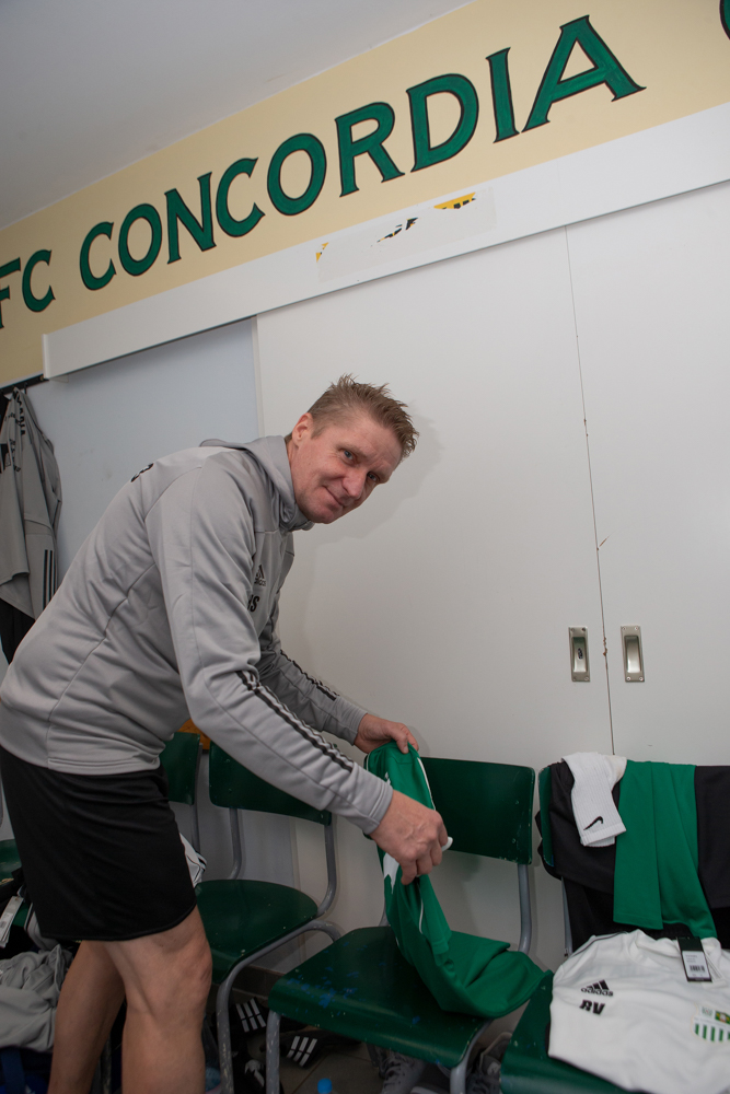 Holger Sahr ist bei jedem Spiel seines FC Concordia mit dabei und auch an den Trainingstagen – dienstags und donnerstags in Buckow – findet man ihn bei der Mannschaft. „Ich arbeite als Lagerdisponent in einer großen Firma und versuche meine Schichten so zu legen, dass ich dabei sein kann.“