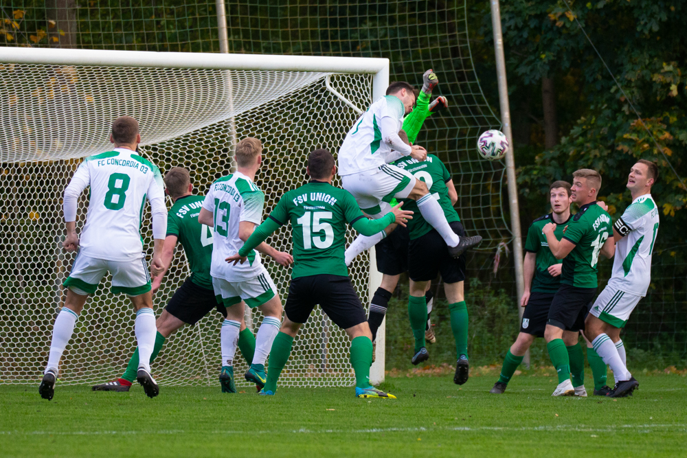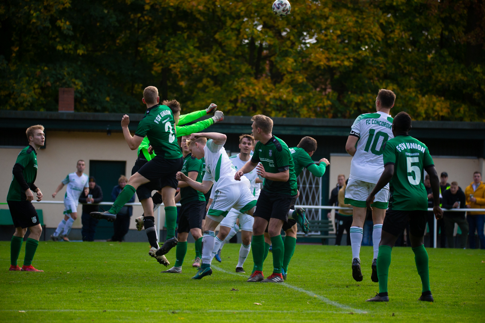 Dass die Abwehr des FC Concordia nicht immer sattelfest ist, zeigte der erste Gegentreffer. Der fiel nach einem großen Durcheinander im Concordia- Strafraum. Hysen Muca erzielte in der 73. Minute das 1:7. Zusätzliche Ergebniskosmetik gelang den Männern aus der Spreestadt durch zwei weitere Treffer. Marvin Kranz verwandelte einen durch Schiri Michael Wendorf verhängten Strafstoß und zwei Minuten vor Schluss einer denkwürdigen Partie war Christian Mlynarczyk für seinen Verein erfolgreich.