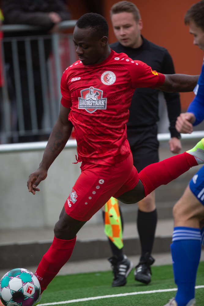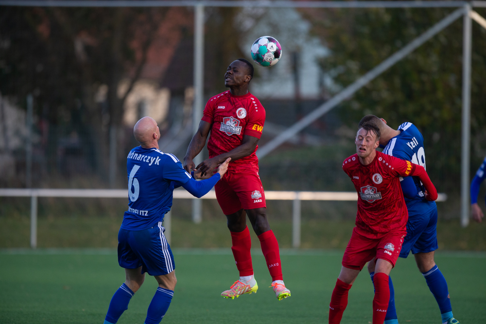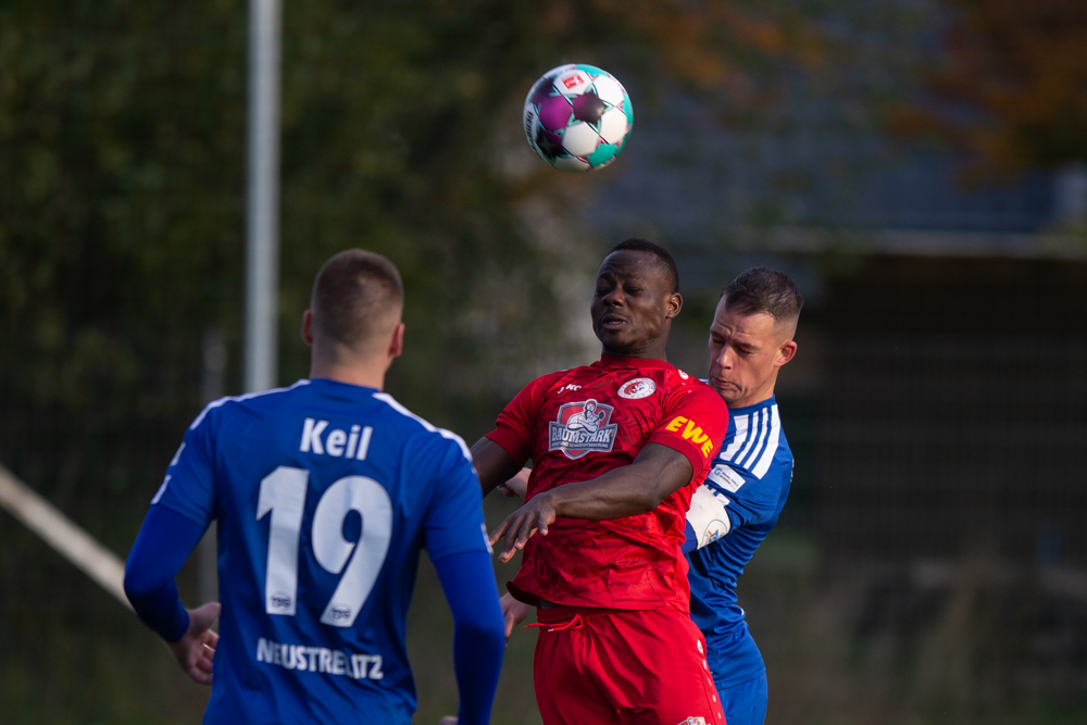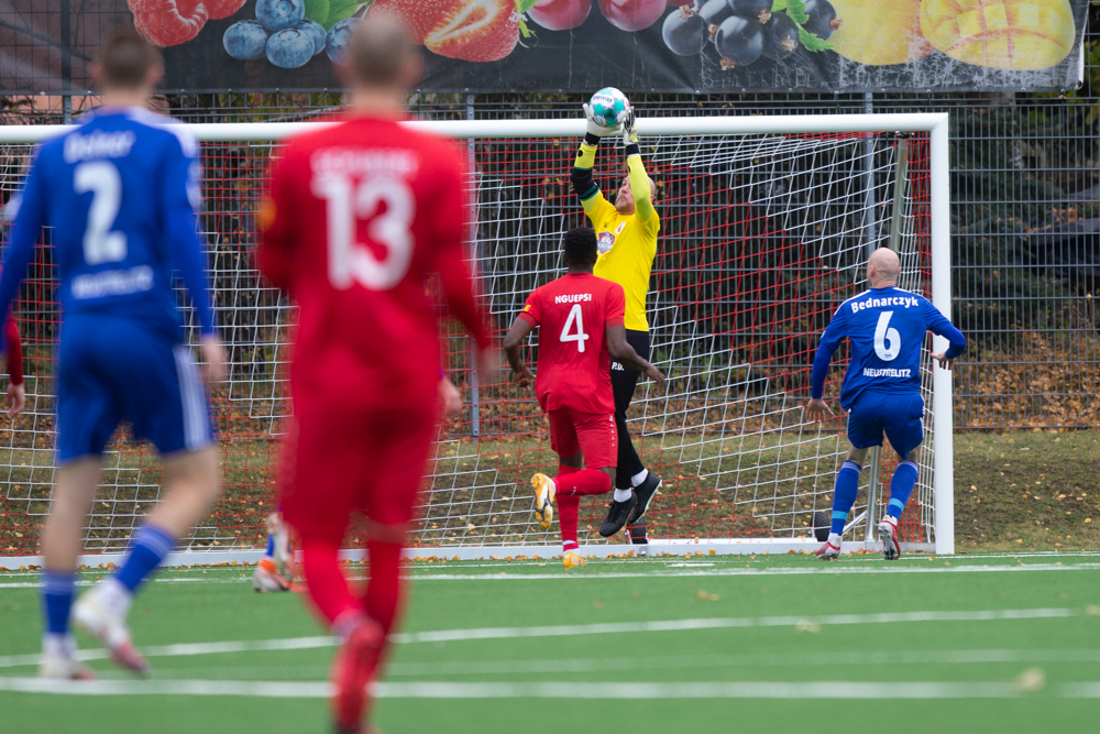 Auch bei der Victoria sind einige junge Spieler in dieser Saison mit dabei. Einer kam zu Saisonbeginn aus Eisenhüttenstadt und wird auch in der Zukunft noch für viel Freude bei seinen Trainern Robert Fröhlich und Matthias Schade sorgen. Beide schwärmen schon jetzt vom 21-jährigen gebürtigen Kameruner Yvan Ghilslain Ngoyou, der in der Innenverteidigung eine feste Größe ist. Doch in dieser Partie gab es für ihn auf Grund seiner Unerfahrenheit einen Rückschlag. Er bekam zunächst nach einem Foulspiel die Gelbe Karte von Schiedsrichter Marek Nixdorf. Wenige Minuten später zeigte er sich verbal nicht einverstanden mit einer weiteren Entscheidung des Unparteiischen. Im Spielprotokoll wurde „wegen Meckerns“ vermerkt. Es war keine böse Äußerung, nur eben eine zum denkbar ungünstigen Moment! Die Folge war die zweite Gelbe Karte.