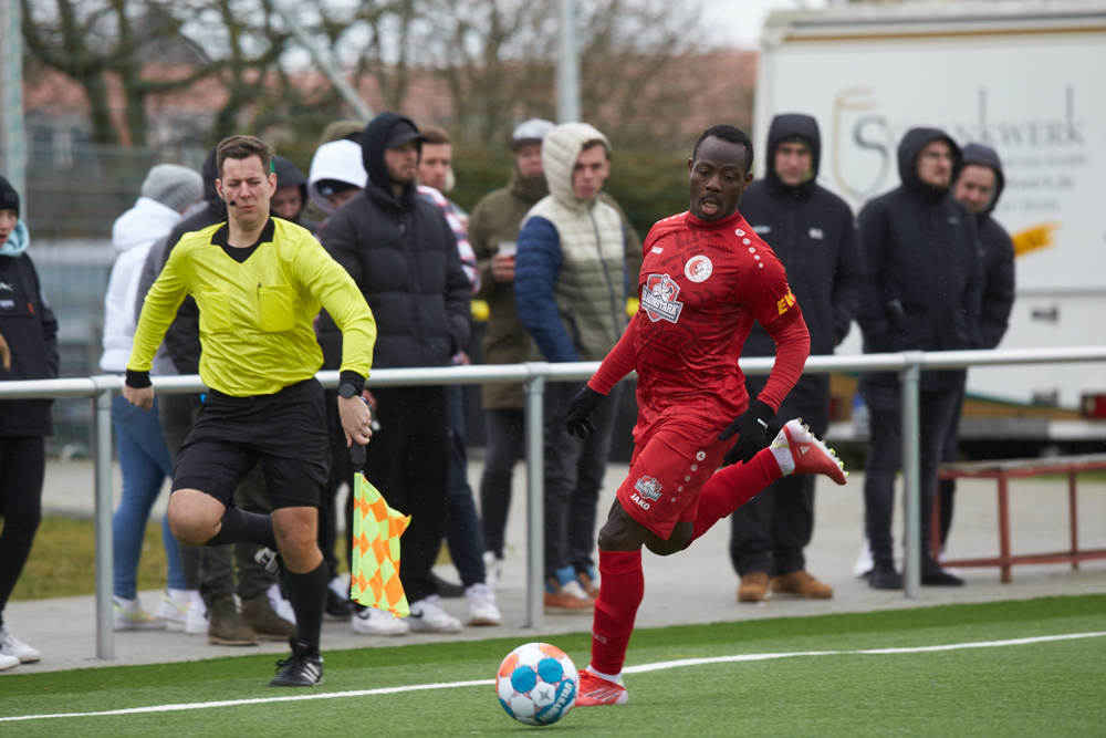Doch bereits nach 16 Spielminuten musste er mit ansehen, wie seine Hintermannschaft den Männern aus dem hohen Norden ein echtes Gastgeschenk bereitete. Pieter Marvin Wolf nutzte den Abspielfehler im Spielaufbau der Seelower den Wetterbedingungen entsprechend eiskalt aus. Seelow hatte auch Möglichkeiten. Die Beste nach einer Ecke, die von Kahled Akasha getreten wurde. In der Mitte kam Ryan Smith Mabom Njiki zum Kopfball und verpasste ganz knapp.