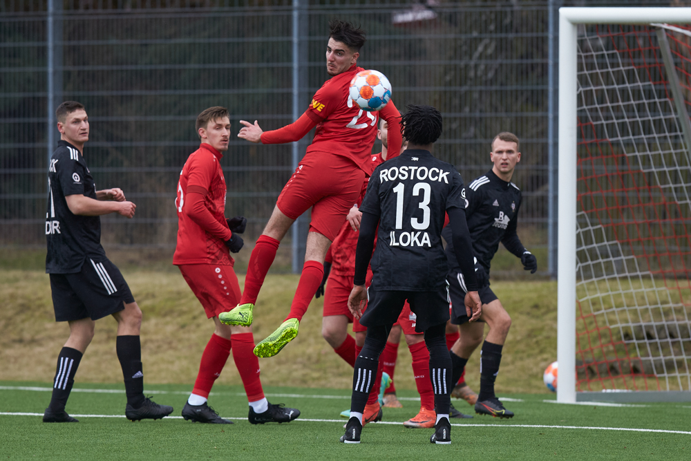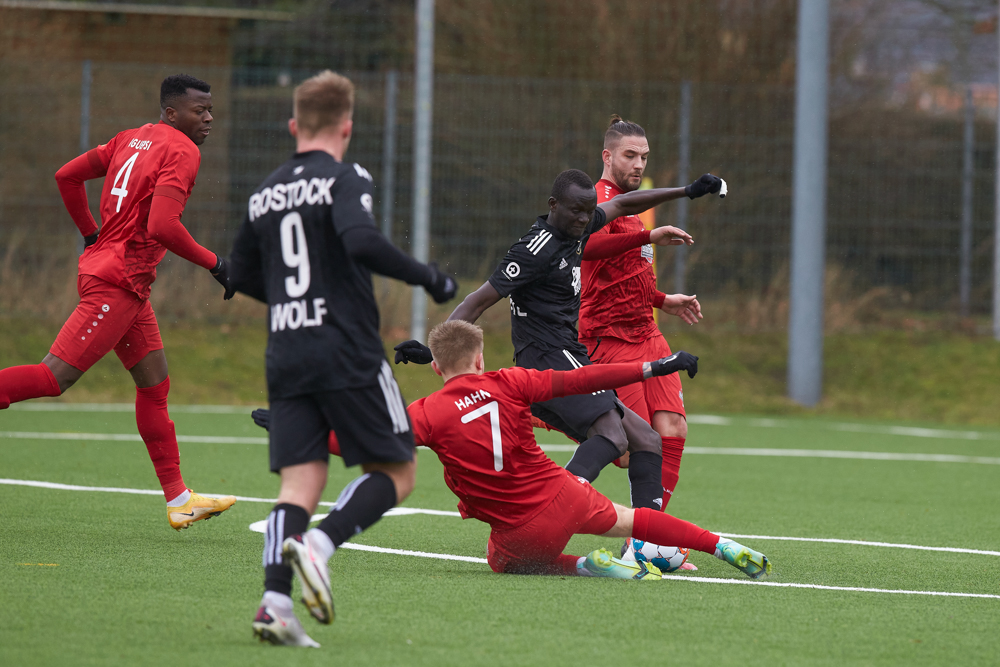 Rostock: Schobert – Tille, Birkholz, Esdorf – Doagbodzi (60. Steen), Berger, Gesien – Lagrib (60. Martin), Wolf, Bitton (64. Lima) – N Diaye (76. Diabie)