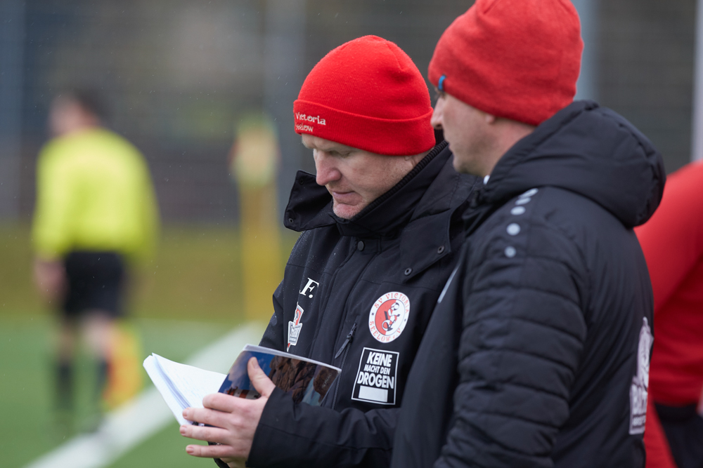 Doch für weitere freundschaftliche Momente blieb dann wenig Zeit. Für den Rostocker FC geht es in dieser Saison um sehr viel, denn der Aufstieg in die Regionalliga ist das Ziel der Norddeutschen. Der SV Victoria Seelow sollte auf diesem Weg kein Bremsstein werden. Am Ende war der Ausgang doch deutlicher als erwartet. Jedenfalls aus der Sicht des Seelower Trainers Robert Fröhlich. Vor dem Spiel sprach er noch davon: Heute etwas mitnehmen zu können. „Wir haben gut trainiert und die Vorbereitung war auch ganz ordentlich.“
