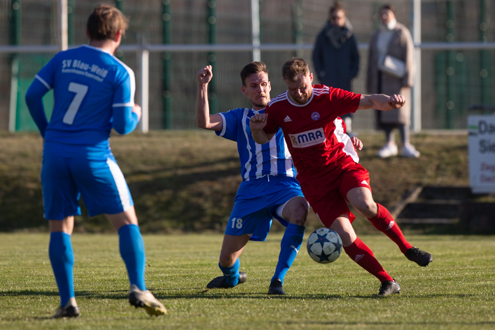Jede Menge Glück und der gut aufgelegte Florian Rudolph im eigenen Tor sicherten den Blau-Weißen dann aber doch den Punkt. Der Keeper hielt in der Schlussphase einen gut geschossenen Freistoß von Alexander Kraatz in großer Manier.