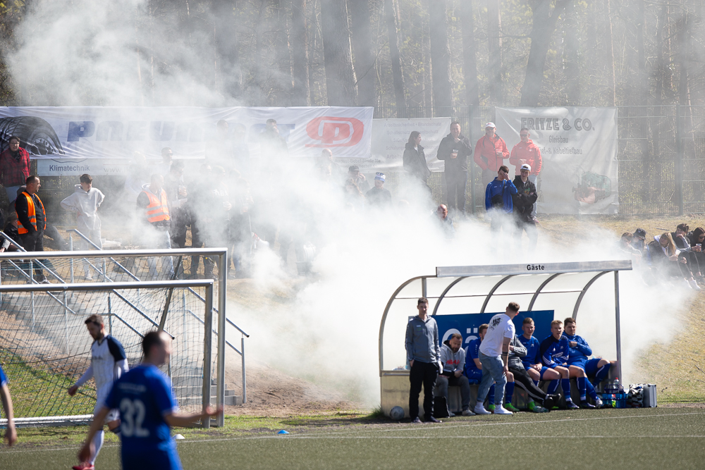 Die erste Möglichkeit hatten die Fürstenwalder und da musste der Blau-Weiße Abwehrspieler Ives-Marvin Ertel den Ball von der Torlinie kratzen. Wenige Minuten später hätte Schiedsrichter Ricardo Herdam auf den Elfmeterpunkt zeigen können. Fürstenwaldes Ibrahim Bouombouo hatte im eigenen Strafraum Blau-Weiß-Stürmer Tobias Hoke umgerannt. Der Pfiff blieb aus.