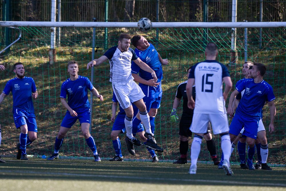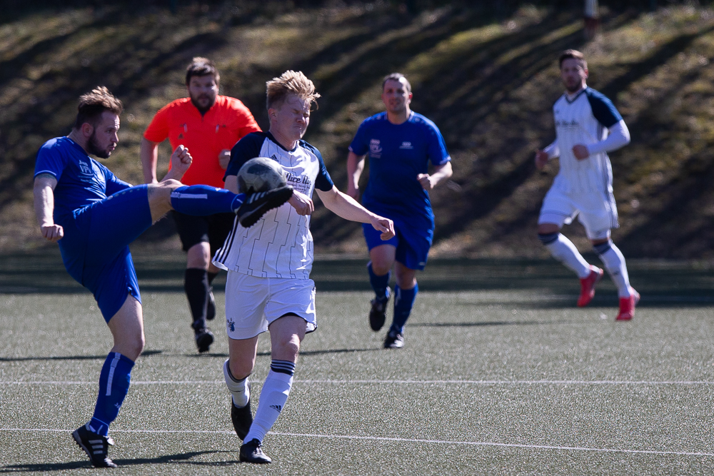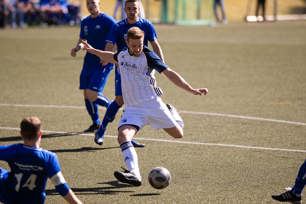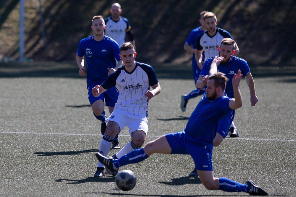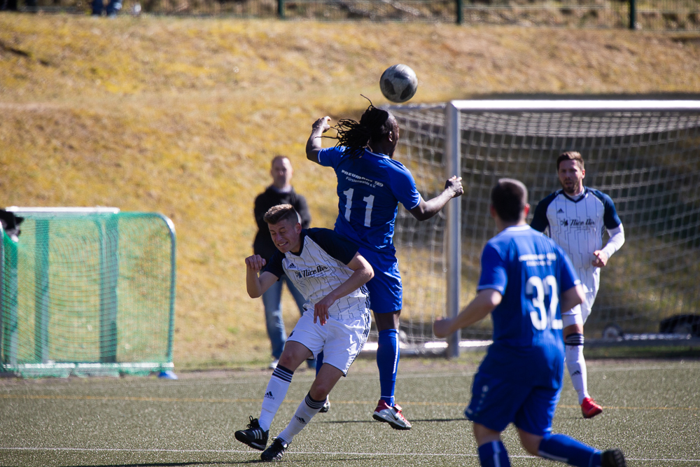 Natürlich drückten die Blau-Weißen mächtig auf den Ausgleich. In die nun entblößte Abwehr konterte Pneumant und hätte in der Schlussphase gleich zweimal hintereinander das 2:0 schießen können – müssen. Zunächst legte Eric Strehl für Tommy Schäfer auf. Schäfer traf freistehend nicht das leere Tor, sondern nur den Pfosten. Auch in der nächsten Szene konnte Schäfer den Angriff nicht mit einem Tor abschließen.
